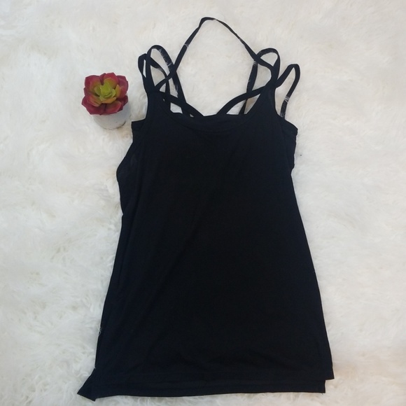 Athleta Xs Strappy Built In Bra Yoga Tank Black