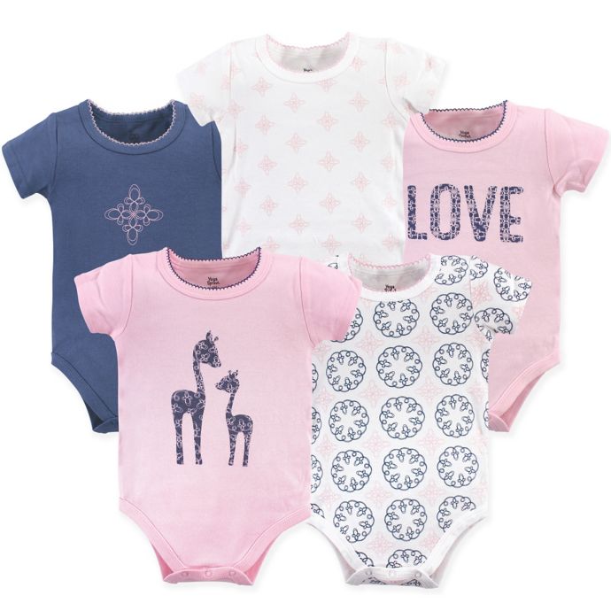Yoga Sprout 5 Pack Whimsical Giraffe Bodysuits In Pink