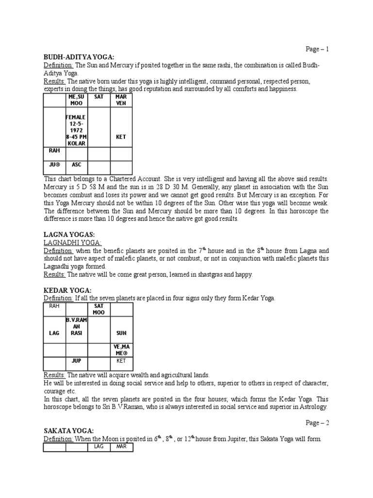 Yogas From Lag Na Occult Esoteric Cosmology