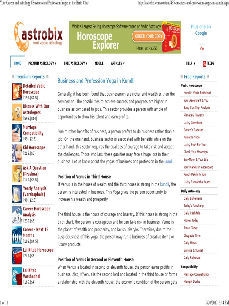 Your Career And Astrology Business And Profession Yogas In